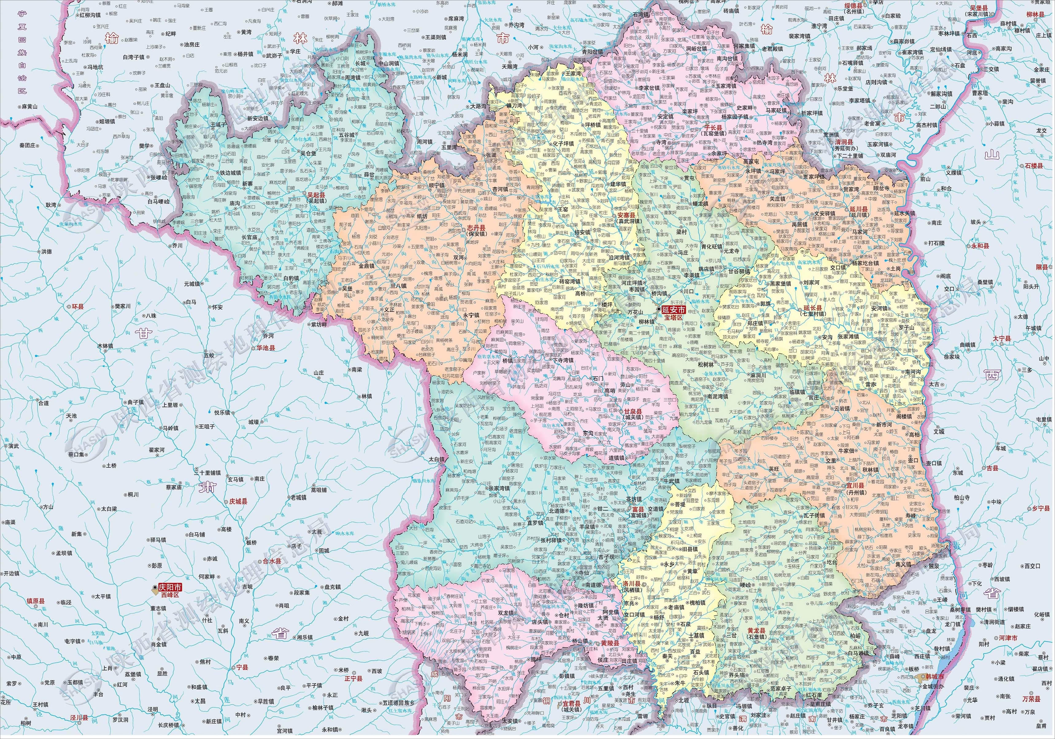 延安市轄2個(gè)市轄區(qū)、10個(gè)縣、代管1個(gè)縣級(jí)市: