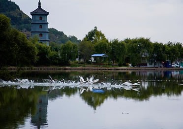 玉華宮東宮也叫郭玉溝,樹(shù)木郁蔥,清泉細(xì)流,天然巖窟鬼斧神工,人文景觀與自然景色渾然一體,若仙境一般。初春,山花爛漫,到玉華宮賞花,沉醉于山花爛漫之中,流連忘返;盛夏,溪回松風(fēng),曠然神怡,到玉華宮避暑,置身天然氧吧,感受郭玉溝的清爽和寧?kù)o;金秋,秋菊盛開(kāi),色彩斑斕,到玉華宮游園,體驗(yàn)陶淵明“采菊東籬下,悠然見(jiàn)南山”的閑情;隆冬,銀裝素裹,冰雕燈展 喜迎四方游客。