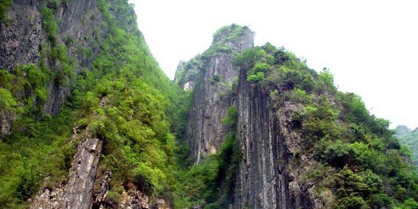 巫峽:位于川陜交界的南江縣明江上游,左靠光霧山,右鄰?fù)ńZ水河、上承貴民神門、下接斷渠風(fēng)景區(qū),景區(qū)方圓5里,沿明江南北延伸,距南江縣城僅20公里。小巫峽景色以“十怪三絕”獨具特色。景區(qū)萬丈峽谷一刀切,天開一線。石門欲磕,勢如沖天,雄偉壯觀之極;峽壁蒼枝倒掛,勁干橫空,千年藤蔓,盤根錯節(jié),或寄于壁縫,或牽著險石。時有獼猴攜崽攀援呼嘯其間。有“望鄉(xiāng)臺”、“閻王碥”、“手爬巖”、“奈何橋”等奇石險景。