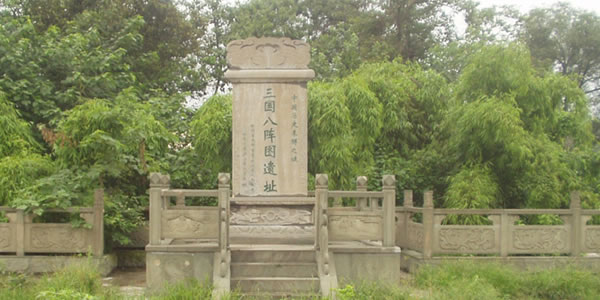 八陣圖遺址:在青白江區(qū)彌牟鎮(zhèn)西南,相傳為諸葛亮推演兵法、操練士卒所用。據(jù)古籍記載:“八陣者,象八卦以定位,因井地而制形,兵之紀(jì)律也。武侯推演,盡得其妙。”另據(jù)《八陣圖碑記》云:“諸葛武侯之八陣圖,在蜀者二,一在夔州永安宮,一在新都彌牟鎮(zhèn)。”(彌牟鎮(zhèn)原屬新都縣)該遺址今僅余土壘六座,當(dāng)年之風(fēng)貌已蕩然無存。1981年,成都市人民政府公布為市級文物保護(hù)單位。