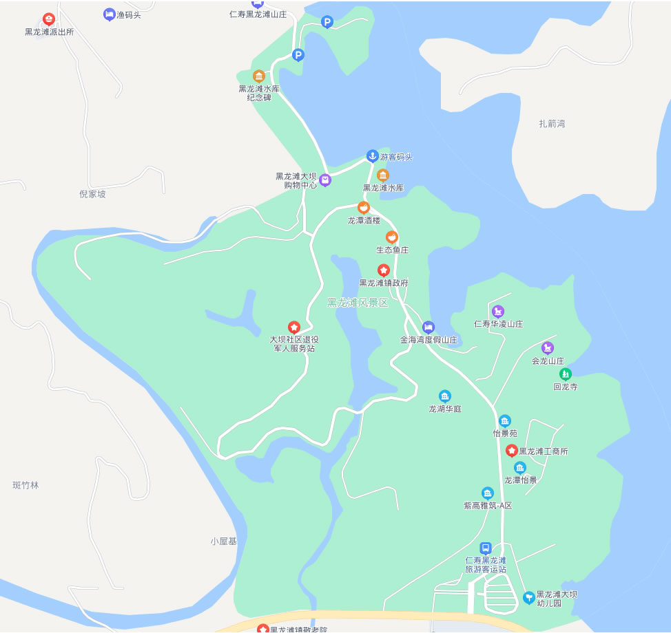 1986年,成立黑龍?zhí)讹L(fēng)景名勝區(qū),后改名為黑龍灘風(fēng)景區(qū)。黑龍灘風(fēng)景區(qū)擁有7峽7壩85座群島,湖岸線長(zhǎng)310公里,湖水面積23.6平方千米。截至2021年,黑龍灘景區(qū)已建成水庫(kù)、濕地公園、旅游度假區(qū)為一體的風(fēng)景名勝區(qū)。