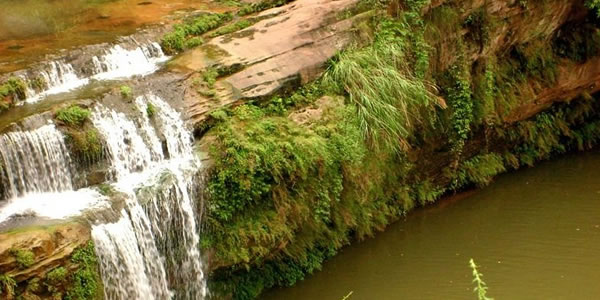 黃金峽:位于丹棱城西24千米張場(chǎng)鎮(zhèn),仁興鄉(xiāng)和王場(chǎng)鄉(xiāng)境內(nèi),峽長(zhǎng)7.5千米,兩岸壁立,對(duì)峙如門(mén),其崖筆立陡削直插云天,形成雄偉壯觀的"一線天"。峽內(nèi)主要景點(diǎn)有:龍?zhí)讹w瀑、金峽湖、雙猩向龍?zhí)、危崖水簾、一線天、虹渡、望魚(yú)石、金船等。當(dāng)?shù)厝搜裕?quot;金峽有三奇,曉雨不濕衣,九月瑞雪飛,夜半聞琴聲","神隆博濟(jì)廟,喊聲一出雨就到"。"黃金天子一夜鑿?fù)S金堰"等傳說(shuō)故事更是神奇美妙。