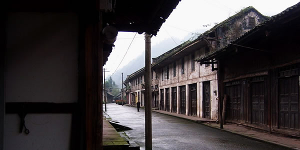 柳江鎮(zhèn)位于洪雅縣城西南25公里花溪河支流柳江兩岸,明末為三溪場,清雍正十二年(1734)柳姜二姓改建易名柳江場。南宋紹興十年(1140)更名明月鎮(zhèn),歷代屢興屢廢。 柳江鎮(zhèn)位于洪雅縣,地處通往瓦屋山國家森林公園的途中,四周青山環(huán)抱,天氣晴朗時還可遠(yuǎn)眺峨嵋群峰。解放前,這里是幾家大戶人家的統(tǒng)轄之地,每戶人家都有特別之處,當(dāng)?shù)厝诉給他們?nèi)×撕糜浀拿,如誰家房子、誰家谷子等。幾家大戶構(gòu)成了柳江鎮(zhèn)的基礎(chǔ),這些單體的豪宅與秀美的山水幾近完美地組合在一起,加上臨水而建的街市,一幅活脫脫的山水畫卷,現(xiàn)存的有保存完好的特色建筑曾家大院和老街。