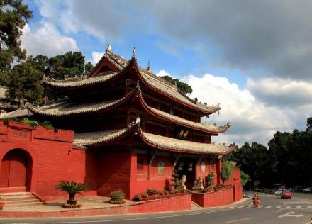位于梓潼縣城北郊,山勢(shì)雄奇,峰回路轉(zhuǎn),巍巍廟宇,依崖而立,喬木垂蔭,風(fēng)光秀麗,素有“蜀道明珠”之稱。唐代詩(shī)人李白《蜀道難》一詩(shī)中描述的“五丁開山”的故事就發(fā)生在此。七曲山大廟舊稱“文昌宮”,是“文昌帝君”張亞子的專廟。元代開建,殿宇樓閣共二十三處。結(jié)構(gòu)謹(jǐn)嚴(yán),布局有序,廊腰縵回,曲折自然,雕梁畫棟,莫不精工,為蜀中少有的古建筑群。廟內(nèi)還存有罕見的大鐵鑄造像、鐵鑄花瓶等珍貴文物。明末農(nóng)民起義軍領(lǐng)袖張獻(xiàn)忠曾將大廟認(rèn)作“家廟”。七曲山大廟還以古柏聞名,山中一株“晉柏”虬枝粗干,宛若蒼龍騰空,有“樹王”之稱,為古“翠云廊”之奇觀。