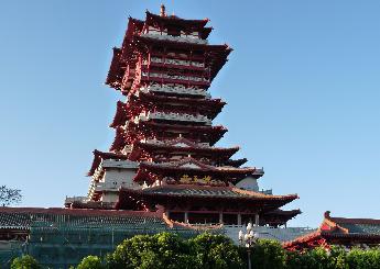 位于游仙區(qū)龜山之巔,始建于唐高宗顯慶年間(656年—661年),已有1300余年歷史,是與黃鶴樓、滕王閣、岳陽(yáng)樓齊名的唐代文化名樓之一。東望富樂(lè)(山)、西接碧水(寺)、南眺南(山)塔、北連九院(科學(xué)城),踞龜山傍涪水,攬綿州之勝于無(wú)余。歷代詩(shī)人題詠越王樓詩(shī)篇多達(dá)150余篇,其中尤以詩(shī)仙李白的《上樓詩(shī)》:“危樓高百尺,手可摘星辰,不敢高聲語(yǔ),恐驚天上人!甭劽煜。