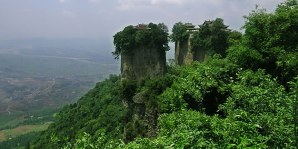 竇圌山:又名圌山,位于四川江油城北20公里的涪江東岸。又名圌山。相傳唐代彰明(今屬江油縣)主簿竇圌(字子明)隱居于此,故名。自麓至頂約5公里許,行道迂回盤旋,林木蒼翠,景色秀麗。 李白少年時(shí)曾游此山,題下千古絕句“樵夫與耕者,出入畫屏中”,后國(guó)民黨元老于右任手書(shū)鐫刻于山中石碑之上。
