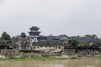 清末民初,湖廣、江西等省的商人也到此經(jīng)商并建造會館,精明的元通人在江邊筑起了場鎮(zhèn)。從元通鎮(zhèn)糧站的一道大門進去,爬上一棟6層樓樓頂,從樓頂可以看到,大片青瓦屋頂,沿著文井江鱗次櫛比,臨河而居,中間一條街道穿行其中,好一派江南水鄉(xiāng)的味道。