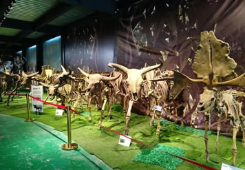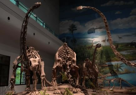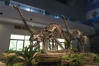 1.藏量巨大。館藏恐龍及魚類、兩棲類、龜鱉類、蛇頸龍類、鱷類等個(gè)體200多具。其中恐龍種類包括原蜥腳類、蜥腳類、獸腳類、鳥腳類和劍龍類等,數(shù)量占全川總數(shù)的1/2,占全國(guó)總數(shù)1/6,是名副其實(shí)的全國(guó)第一大恐龍冢穴,在國(guó)際上與之齊名的也僅有美國(guó)猶他州國(guó)立恐龍紀(jì)念館和加拿大阿爾伯塔省立恐龍公園。