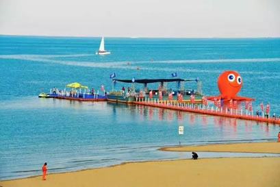 景區(qū)還將增添激情水上飛碟、快艇漂移、水上沙發(fā)、水上UU船、帆船、海上滑梯、海上蹺蹺板等數(shù)十項(xiàng)大型游樂設(shè)施,讓這里真正成為海上“迪士尼”。作為配套設(shè)施,在人工海灘西側(cè)修建濱海路,全長1.3公里,道路寬24米,為景區(qū)內(nèi)步行觀景道路,道路兩側(cè)綠化面積約6700平方米。綠化廣場總面積12萬平方米,景區(qū)停車場總面積約4700平方米。景區(qū)設(shè)置為沙灘親水區(qū)、沙灘游泳休閑區(qū)、水上運(yùn)動(dòng)休閑中心和水上休閑娛樂區(qū)。其中,位于沙灘游泳休閑區(qū)已經(jīng)建成的海景會(huì)所,是目前國內(nèi)北方最大的單體木結(jié)構(gòu)海景酒店會(huì)所,設(shè)有餐飲、住宿、淋浴、商務(wù)、娛樂等設(shè)施,并提供有地道的天津狗不理包子。另外,會(huì)所周邊正在建設(shè)游艇會(huì)所、五星級(jí)酒店、運(yùn)動(dòng)廣場、低密度住宅、高爾夫球場等設(shè)施。配套服務(wù)設(shè)施將逐步完善。