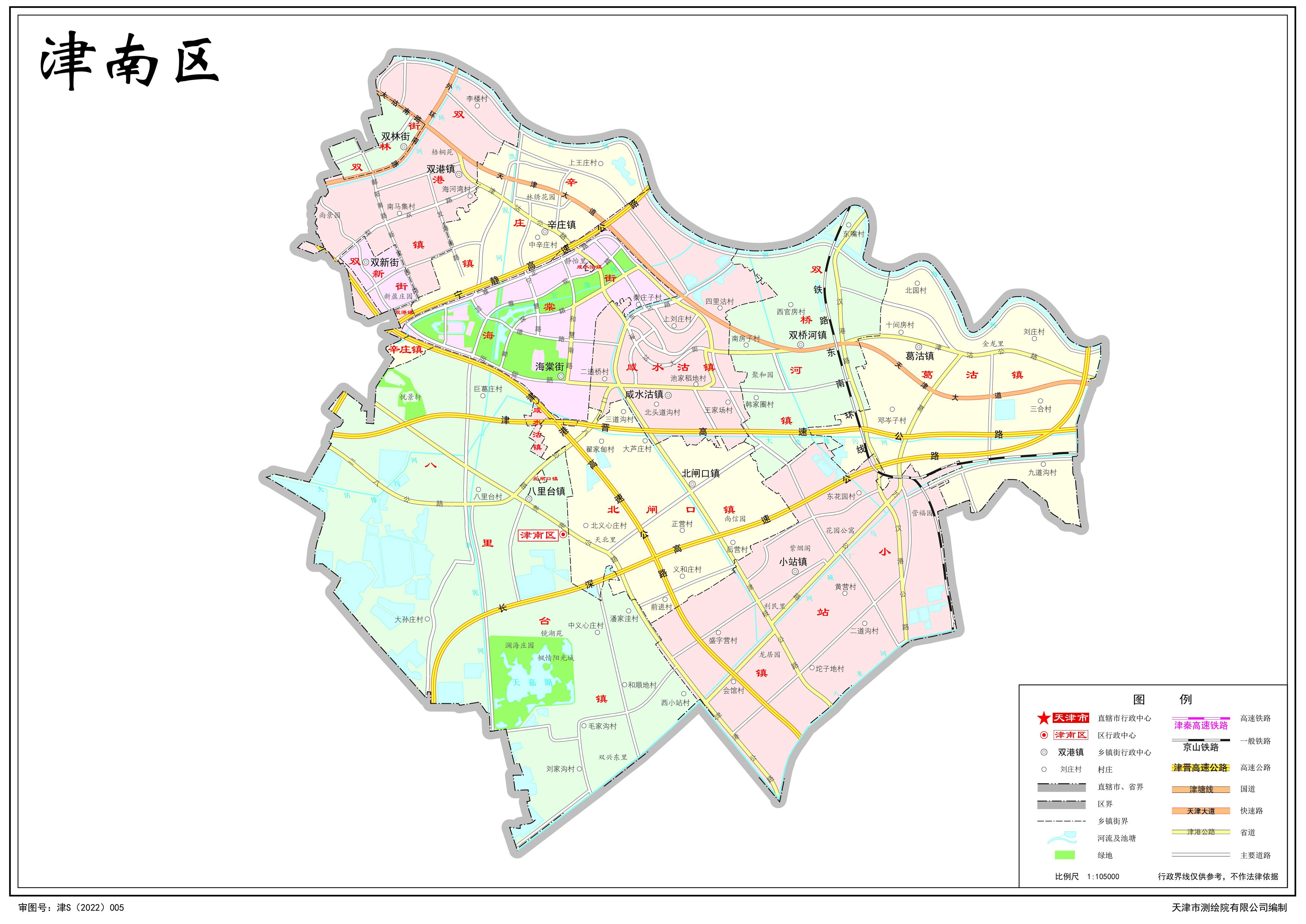 鎮(zhèn):咸水沽鎮(zhèn)、葛沽鎮(zhèn)、小站鎮(zhèn)、雙港鎮(zhèn)、辛莊鎮(zhèn)、雙橋河鎮(zhèn)、八里臺(tái)鎮(zhèn)、北閘口鎮(zhèn)