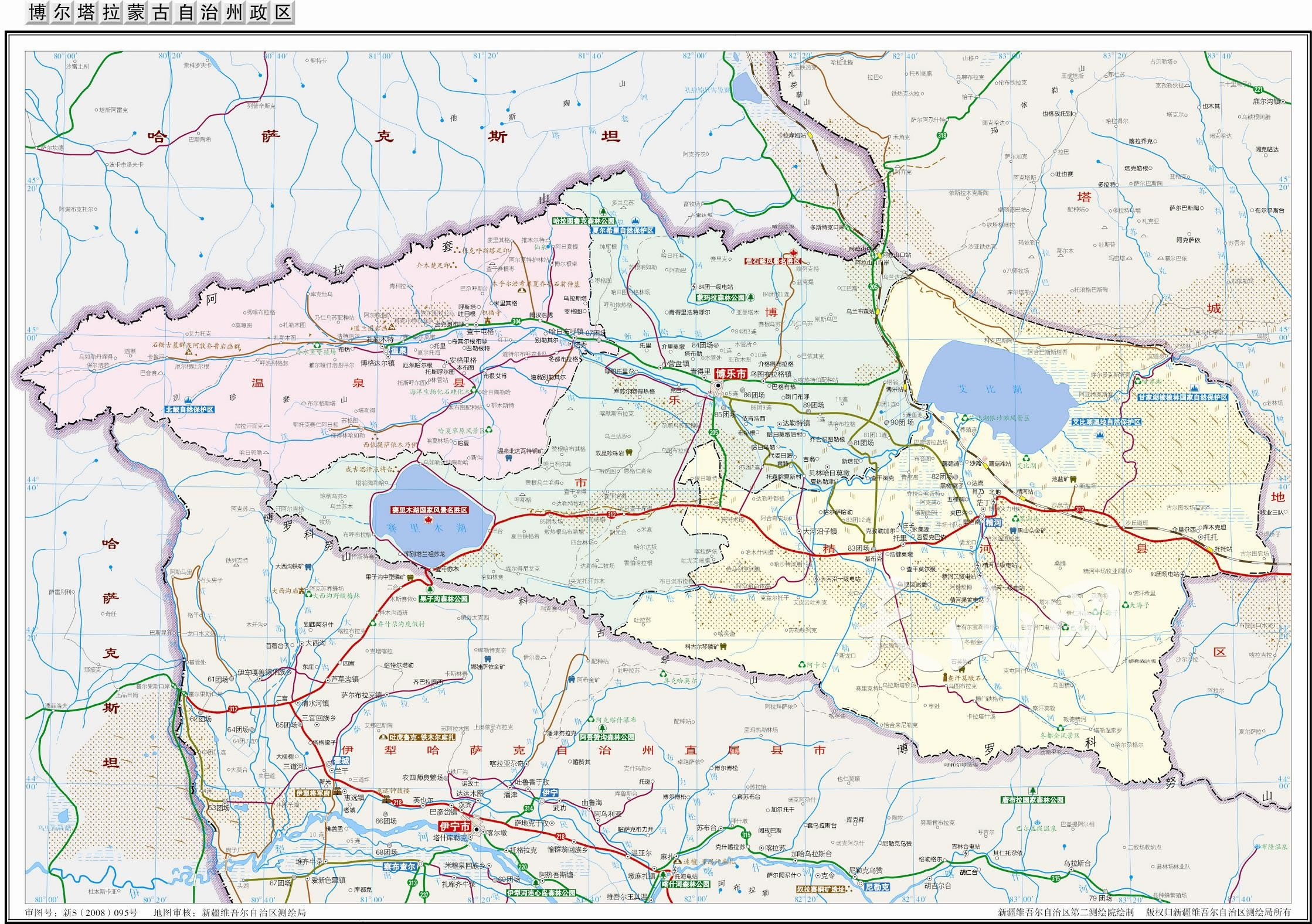 博爾塔拉蒙古自治州轄2個縣級市、2個縣: