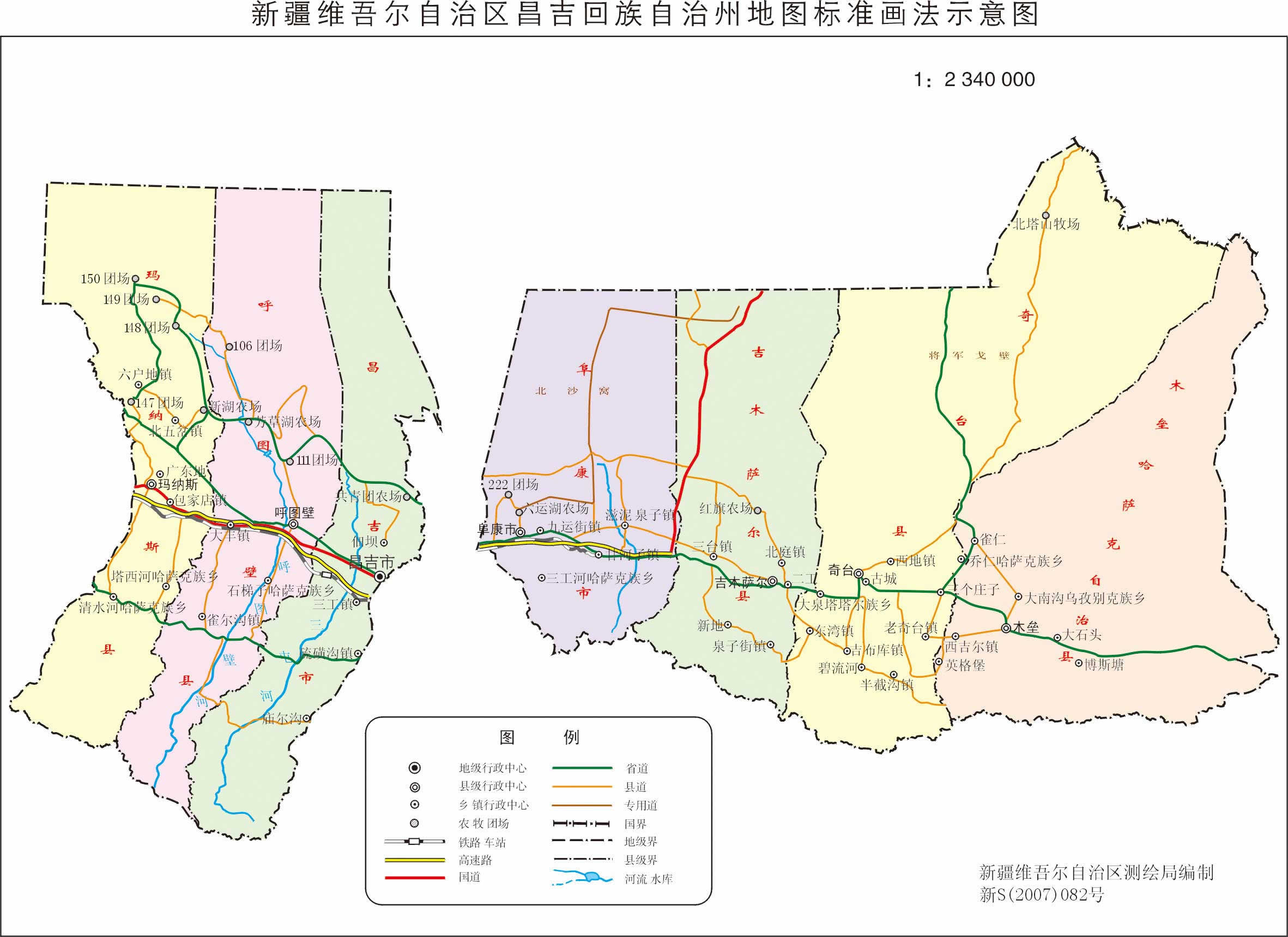 昌吉回族自治州轄2個縣級市、4個縣、1個自治縣: