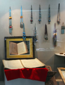 館中展出了在刀郎地區(qū)收集到的部分古老器物、錢幣、文牘、書籍,讓見(jiàn)證了物質(zhì)的刀郎;刀郎人古時(shí)勞作生活的塑像、古老的居室、用具、物品,則使通過(guò)時(shí)間的隧道,回到了古老的時(shí)代,與昔日的刀郎人對(duì)話。