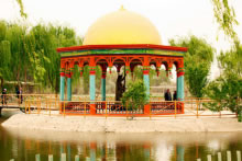 修建思音亭是為紀(jì)念刀郎古典音樂(lè)“十二木卡姆”的搜集、整理者阿曼尼沙罕。阿曼尼莎罕生于1526年,卒于1560年,是阿不都熱西提之妃。她天資聰穎、是位才華出眾、美麗過(guò)人的奇女子,是十五世紀(jì)杰出的刀郎女詩(shī)人,刀郎古典音樂(lè)“十二木卡姆”的搜集、整理者。13歲入宮,34歲因難產(chǎn)而逝。她生前拜訪社會(huì)藝人、詩(shī)人、民間歌手,整理創(chuàng)編出集刀郎古典音樂(lè)之大成的《十二木卡姆》,使民間音樂(lè)成為科學(xué)、系統(tǒng)、嚴(yán)謹(jǐn)?shù)那俊!妒究贰否Y名中外,是刀郎樂(lè)舞藝術(shù)的稀世瑰寶。刀郎人表演的十二木卡姆,便是經(jīng)過(guò)她整理、規(guī)范后的音樂(lè)。