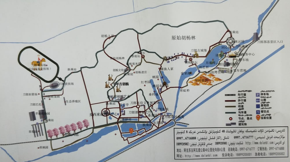 刀郎人是新疆塔里木盆地周圍的原始居民,一直生活在與世隔絕的大漠綠洲之中,保持了特有的民俗風(fēng)情。這里有一處民俗展覽館,可以進(jìn)入?yún)⒂^,深入了解刀郎民族的故事。另外,這里還有葡萄園、無(wú)花果園、垂釣區(qū)、自助燒烤區(qū)、農(nóng)莊等,可以前來(lái)娛樂(lè),品味刀郎美食 體驗(yàn)濃郁民俗風(fēng)情。 景區(qū)東部,則是以胡楊林風(fēng)光為主,這里大片的原始胡楊林,可以前來(lái)觀看這些大漠上最堅(jiān)韌的樹種,拍攝攝影大片。在東部的南側(cè),有一處原始刀郎人村莊,復(fù)制了很多刀郎民族生活的場(chǎng)景,有房屋、木車、勞作工具等,可以前去參觀。