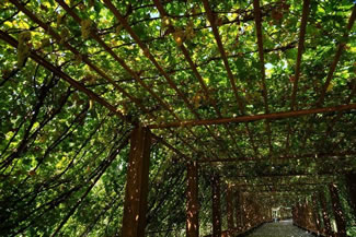 風(fēng)景秀麗的葡萄溝,以盛產(chǎn)優(yōu)質(zhì)葡萄而聞名中外。1994年溝里種植葡萄315.6 公頃,生產(chǎn)鮮葡萄8601噸。這里主要種植無核白葡萄,還有馬奶子、紅葡萄、喀什哈爾、日加干、瑣瑣等 13個(gè)品種。其果實(shí)呈球形、卵形、橢園形等,有的葡萄晶瑩如珍珠,有的鮮艷似瑪瑙,而有的綠若翡翠。那五光十色、翠綠欲滴的鮮葡萄,令人垂涎不止。尤其是這里生產(chǎn)的無核白葡萄、皮薄、肉嫩、多汁、味美,營養(yǎng)豐富,素有“珍珠”美稱,其含糖量高達(dá)20-24%,超過美國加利福尼亞州的葡萄,居世界之冠。用無核白鮮葡萄晾制的葡萄干,含糖量高達(dá)60%,被人們視為葡萄干中的珍品。