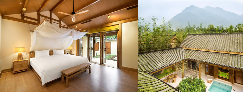 青城山六善酒店毗鄰都江堰景區(qū),依托青城山自然與文化雙遺產(chǎn)底蘊(yùn),融合道家養(yǎng)生理念與現(xiàn)代可持續(xù)設(shè)計(jì),打造靜謐療愈空間,詮釋“與在地生態(tài)共生”的品牌理念。酒店建筑與景觀巧妙結(jié)合地域特色與現(xiàn)代風(fēng)格,庭院別墅和套房以自然色調(diào)呈現(xiàn)寬敞舒適空間。屢獲殊榮的水療中心采用道家療法,調(diào)神靜氣;餐飲將四川美食精髓融入現(xiàn)代烹飪手法,呈現(xiàn)地道風(fēng)味。