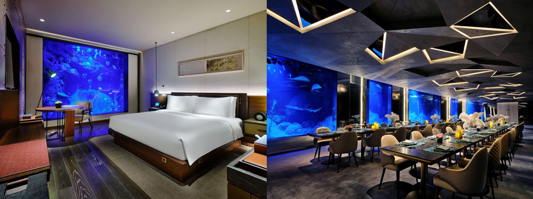 上海佘山世茂洲際酒店,地平線下88米的“建筑奇跡”,由世界知名設(shè)計(jì)師Martin Jochman團(tuán)隊(duì)打造,將自然巖壁與現(xiàn)代設(shè)計(jì)完美融合。酒店330間客房與套房各具特色,包括巖壁景觀房與水下套房,帶來沉浸式住宿體驗(yàn)。餐飲涵蓋現(xiàn)代感十足的“源咖啡”全日餐廳、綺麗獨(dú)特的彩豐樓中餐廳以及四周環(huán)繞水族館的“漁火”特色餐廳;酒吧與大堂吧將深坑景觀與自然美景相映成趣,讓賓客在自然奇境中享受別具一格的入住體驗(yàn)。