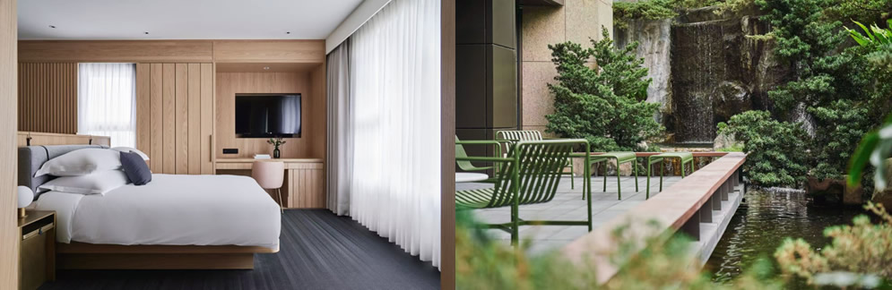 臺北金普頓大安酒店為金普頓品牌亞洲首店,位于臺北東區(qū)靜謐街巷,與購物中心和捷運(yùn)站僅隔一街,周邊遍布文藝畫廊、精品店與人文咖啡館,雖鄰喧囂卻宛如都市靜謐方舟。129間客房與套房融合復(fù)古與白瓷層疊美學(xué),與透光天井相呼應(yīng),處處彰顯設(shè)計(jì)巧思。12樓摩登餐酒館The Tavernist為米其林指南推薦餐廳,寬敞露臺可俯瞰臺北城景與臺北101。酒店設(shè)施完善,包括24小時(shí)健身房及每日“社交時(shí)光”,賓客可盡享設(shè)計(jì)感與都市雅致。