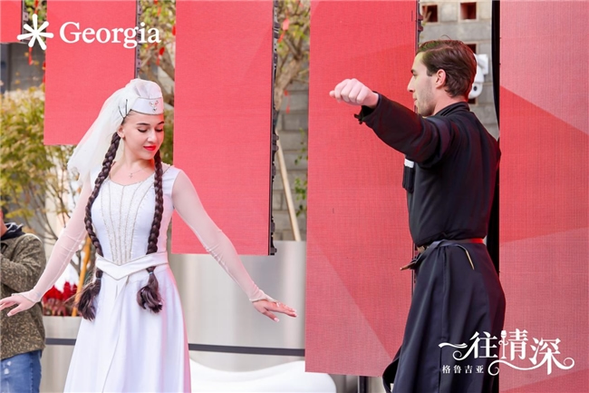 活動現(xiàn)場精心打造四季沉浸式體驗區(qū),讓游客得以近距離感受格魯吉亞的獨特魅力。在春日山谷,身穿民族服飾的舞者,以豪邁的旋轉(zhuǎn)與鏗鏘的踏步,再現(xiàn)高山民族的堅韌與深情,足尖起落間仿佛踏響高加索的山河韻律。