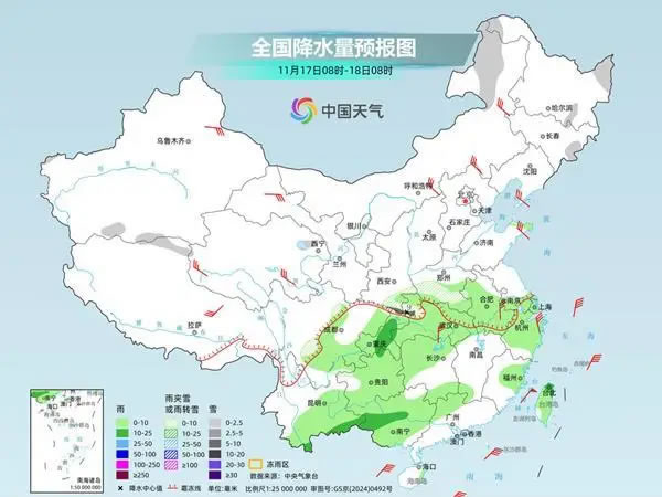 劇烈降溫后,北方氣溫低谷將出現(xiàn)在今天,南方氣溫則在明天降至最低,氣溫會(huì)大面積創(chuàng)下半年來(lái)新低,冷暖轉(zhuǎn)換十分明顯。預(yù)計(jì)18日前后,最高氣溫10℃線將南壓至長(zhǎng)江中下游一帶,最低氣溫0℃將抵達(dá)蘇皖南部至湖北北部一帶。