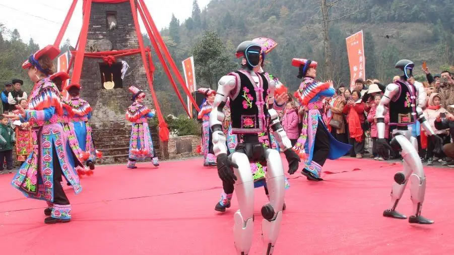活動(dòng)期間,南寶山鎮(zhèn)木梯羌寨處處洋溢著歡慶氛圍,文化傳承與民生溫度交織共生。從莊重的寨門迎新、祭祀祈福儀式,到釋比老人手持羊皮鼓吟唱經(jīng)文的千年信仰傳承;從《摘花椒》《永遠(yuǎn)是一家》等傳統(tǒng)羌族歌舞展演,到身著迷你羌服的機(jī)器人跳沙朗舞的“科技+民俗”創(chuàng)意碰撞……每一個(gè)環(huán)節(jié)都承載著羌族文化的根脈,也傳遞著南寶山鎮(zhèn)發(fā)展文旅產(chǎn)業(yè)的具體實(shí)踐。