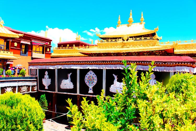 大昭寺融合了藏、唐、尼泊爾、印度的建筑風格,成為藏式宗教建筑的千古典范。寺前終日香火繚繞,信徒們虔誠的叩拜在門前的青石地板上留下了等身叩頭的深深印痕。萬盞酥油燈長明,留下了歲月和朝圣者的痕跡。