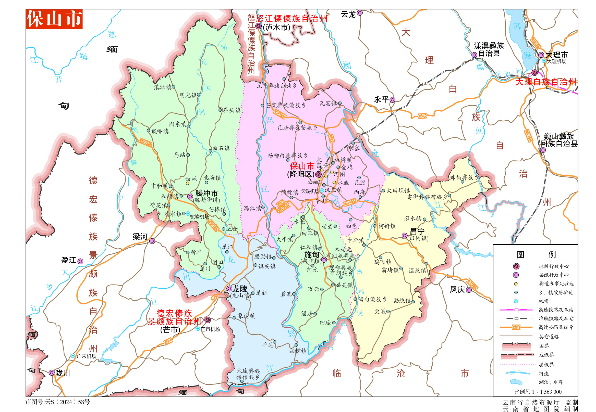 保山市轄1個(gè)區(qū)、3個(gè)縣、1個(gè)縣級(jí)市: