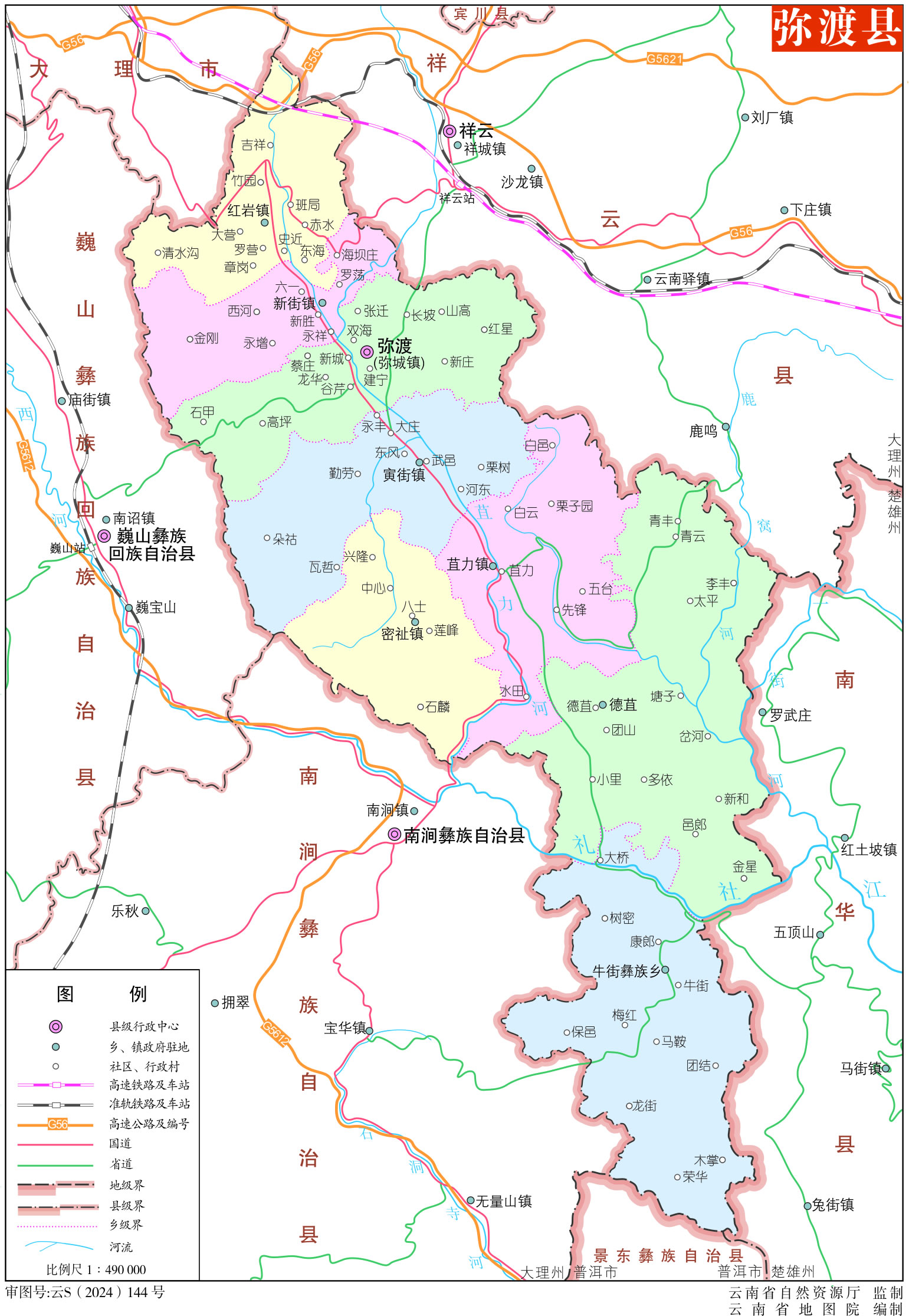 彌渡縣轄6個(gè)鎮(zhèn)、2個(gè)鄉(xiāng):