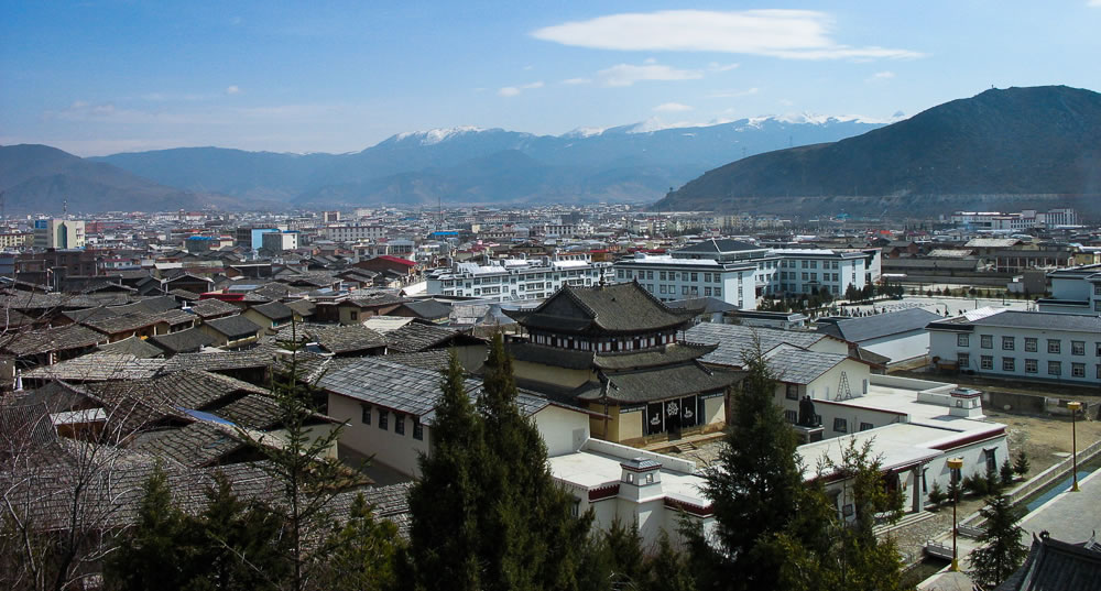該寺又稱歸化寺,距中甸縣城5公里,是一座古鎮(zhèn)規(guī)模的古堡群建筑。于公元1679年(藏歷第十一繞迥陰土羊年)興建,公元1681年(陰鐵雞年)竣工。五世達賴喇嘛親賜名“噶丹·松贊林”。