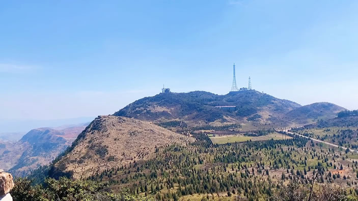 梁王山原名羅藏山。因元朝成吉思汗之孫世襲封號(hào)而得名,山勢雄偉壯麗,峭壁千仞,群峰簇?fù)恚拍緟⑻,海?820米。登上頂峰,方圓數(shù)百里盡收眼底,有一山觀三海(滇池、陽宗海、撫仙湖)之壯景。夏秋之季時(shí)見頂峰白云籠罩,或許白云環(huán)繞山腰,多為有雨之兆;秋日山花爛漫,繁花似錦,故有“梁峰兆雨”、“白云兆雨”、“羅藏秋色”之景。