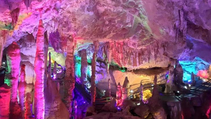芝云洞地下石林公園在大小石林西北6公里處,洞長(zhǎng)400為,寬3-15米,高5-30米,呈“丫”形,兩段洞由一低矮狹窄的洞門(mén)連為一體。洞內(nèi)多石鐘乳、石筍、石柱等溶洞景觀。