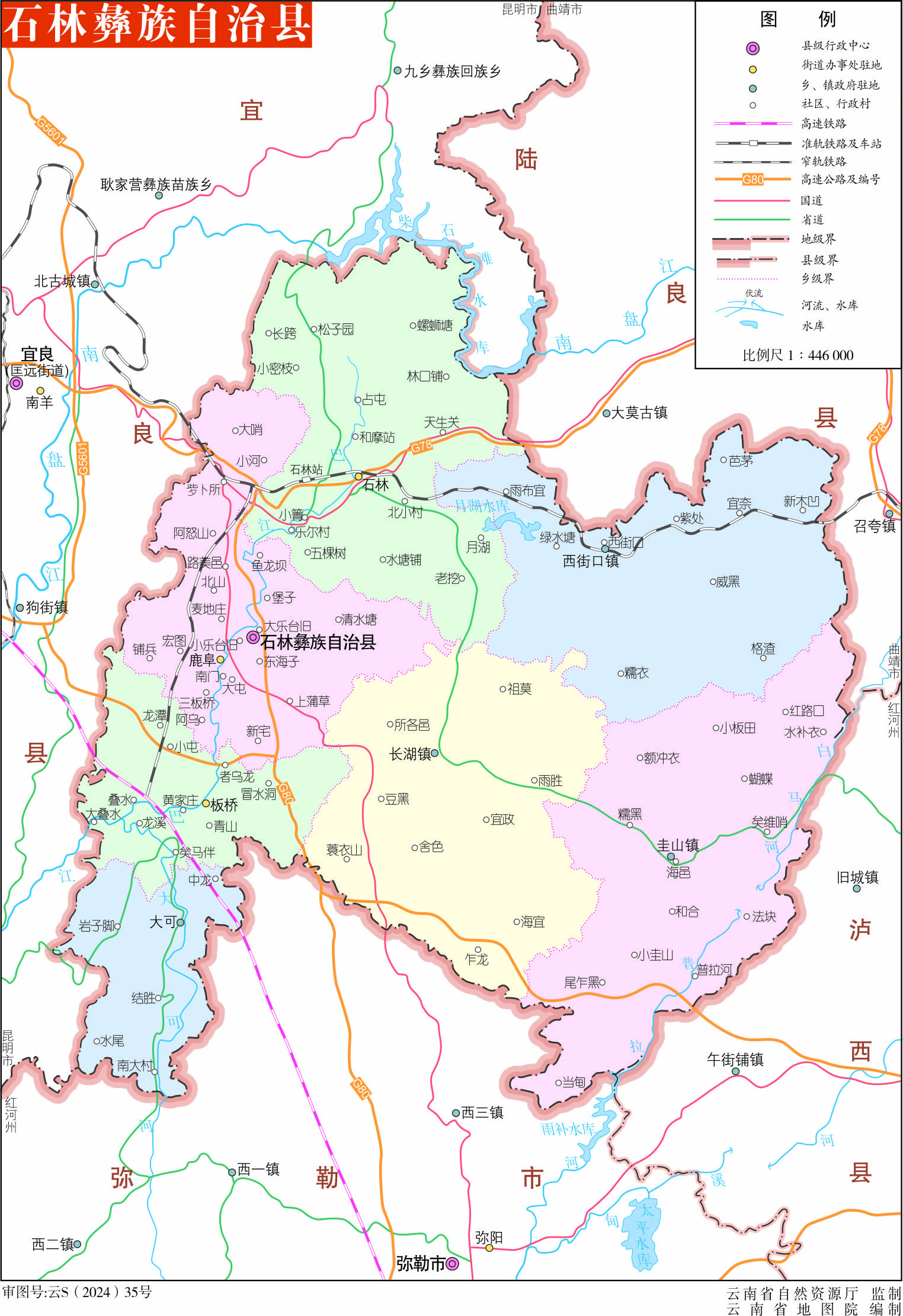 石林彝族自治縣轄3個(gè)街道、3個(gè)鎮(zhèn)、1個(gè)鄉(xiāng):