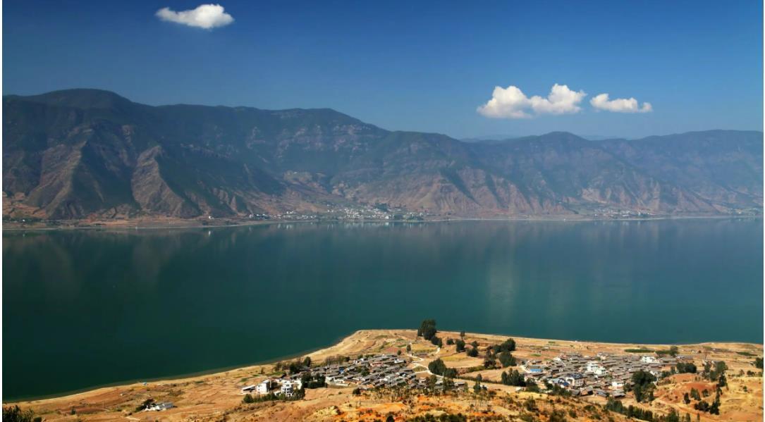 程海湖,云南省永勝縣境內(nèi)金沙江流域湖泊。位于云南省永勝縣中部,一般面積78.8平方千米,一般容積27億立方米。程海位于程海斷裂帶形成的盆地底部,古為程河,為金沙江支流,后陷落為湖。湖水主要來(lái)自盆地周邊山泉。湖水原經(jīng)南部湖口,經(jīng)程河(海河、期納河)下游匯入金沙江。近代由于水文氣候變化湖水一般不再外泄,成為內(nèi)陸湖。