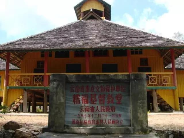 糯福鄉(xiāng)基督教堂清宣統(tǒng)二年(1910年)美國基督教浸信會緬甸景棟教會派牧師到孟連東乃等地傳教。民國五年(1916年),派撒臘比布到瀾滄?zhèn)鹘。民國九年?920年),美國牧師主持糯福教務,于民國十一年(1922年)修建教堂。糯福教堂為瀾滄、雙江、滄源、耿馬等地的基督教會總部。為便于傳教,永偉業(yè)用拉丁字母為拉祜族創(chuàng)造了拉祜文字。糯福教堂總面積506.6平方米,融合西洋與當?shù)孛褡褰ㄖ问健?987年被列為省級文物保護單位。
