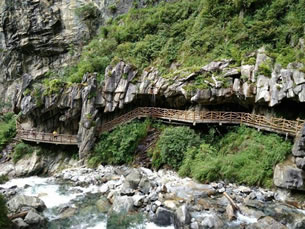 大理蒼山石門關旅游區(qū)的內(nèi)部交通由步行游路、高空棧道探險游路。