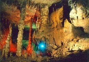 天臺山溶洞離縣城32公里,位于麟風(fēng)鄉(xiāng)畢壩公路邊的老鷹巖上,具有宏、美、寬、多的特點。洞有四層,每層之間高差20~50米,互相貫通,各有廳堂,其中可開發(fā)利用3層。已探測的第二層洞面積64095平方米,長2138.2米。洞終標(biāo)高1188.94米,其中:主洞長1264米,寬35米,高約25米;支洞深874.1米,寬25米,高18~25米。有10余個大廳,大者寬約100米,小者寬20~30米。洞內(nèi)次生碳酸鈣沉積物類型繁多,色彩絢麗,形成各異。單體、復(fù)合體共生,黃色、淡紅色、白色或無色透明石乳、石筍、石柱比比皆是,多以站立式、側(cè)掛式、懸垂分布式。