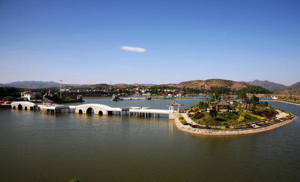 太陽(yáng)湖位于縣城南郊,東臨巧威公路過(guò)境線(xiàn),西接鳴樓自然村,占地面積320畝。園區(qū)整體布局主要由水體湖面、小島嶼、環(huán)湖公路和商業(yè)區(qū)四個(gè)部分組成。太陽(yáng)湖呈蝴蝶型鑲嵌于城郊平壩中央,水體面積為16萬(wàn)平方米,湖面水深2.2米。湖畔有島嶼3個(gè),在島上設(shè)置了八角亭及長(zhǎng)廊等江南風(fēng)格園林設(shè)施,拱型廊橋?qū)⒐聧u與小島連為一體,形成湖中有島、小島四面迎水的秀美景觀。