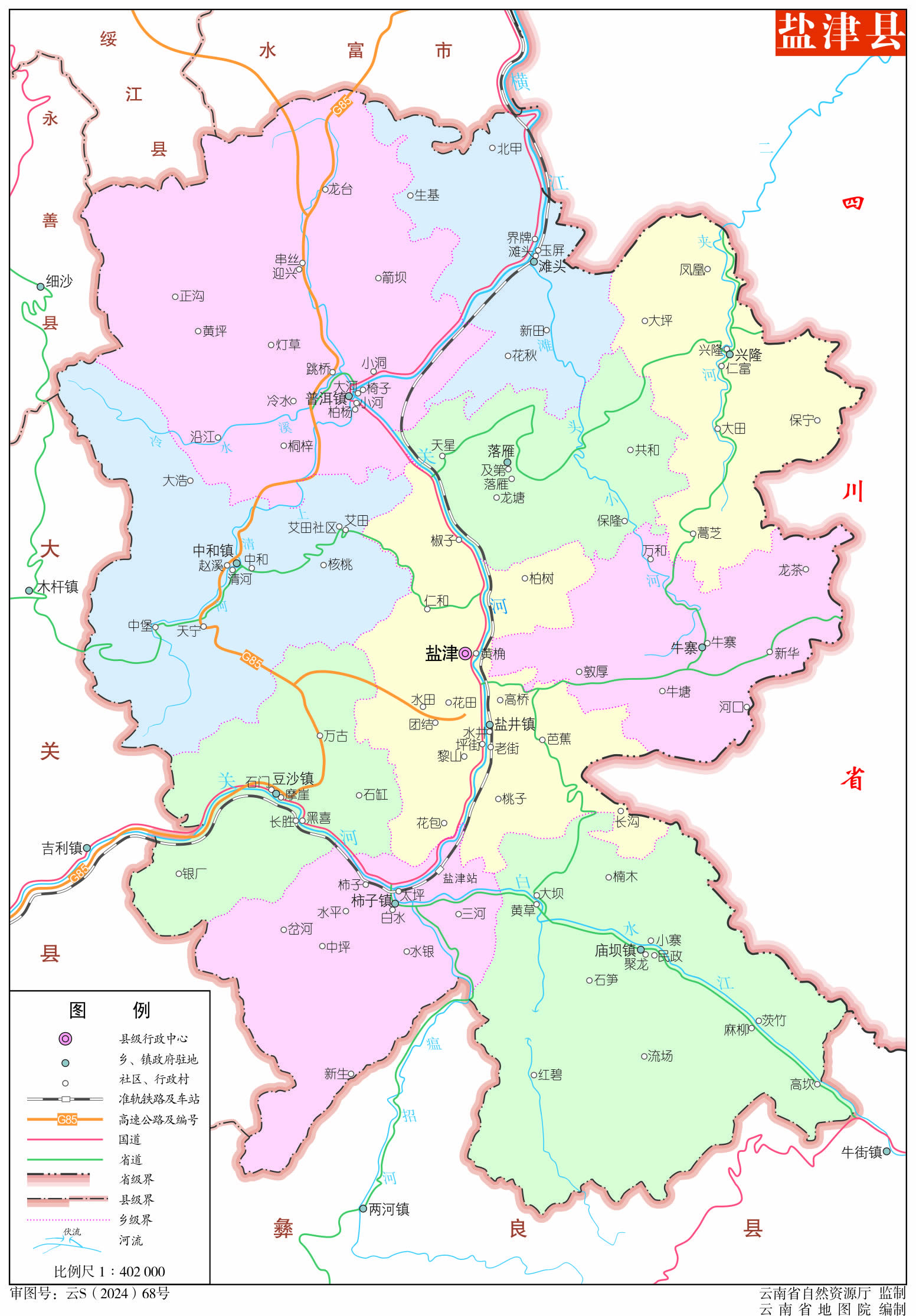 鎮(zhèn):鹽井鎮(zhèn)、普洱鎮(zhèn)、豆沙鎮(zhèn)、中和鎮(zhèn)
