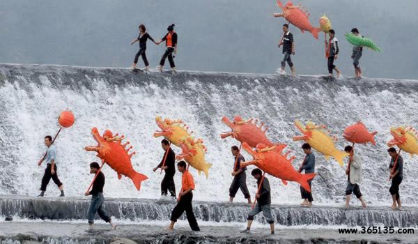 魚燈:是青田最傳統(tǒng)、最有代表性和地方特色的燈舞種類,也是浙江省魚燈類代表性的傳統(tǒng)民間舞蹈。青田魚燈歷史悠久,道具制作精美逼真,伴奏音樂鏗鏘有力,舞蹈動作粗獷奔放,表演風格熱烈樸素。青田魚燈表演時以“紅珠”領隊,每人手舉一盞魚燈,頓時鑼鼓喧天,燈火輝煌,歡聲雷動,場面宏偉壯觀。目前,青田已組建了20多支不同流派、不同年齡、不同形式和不同風格的魚燈表演隊伍。青田魚燈曾參加首都建國50周年慶典演出、第五屆中國國際民間藝術節(jié)、第七屆中國藝術節(jié)和第十三屆“群星獎”等國內(nèi)國際民間藝術交流,取得了優(yōu)異的成績,被譽為“天下第一魚”。