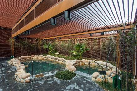 源之圓溫泉館占地面積10800平方米,由溫泉VIP海景套房、男女室內(nèi)和露天溫泉、合家歡溫泉、理療按摩間、餐廳、多功能包房、休息大廳、游戲活動室、兒童樂園等組成。這個中心的溫泉,是在2600米的深縱向與橫向交錯斷裂層內(nèi)抽出,水齡在3萬年以上,最高出水溫度54度,經(jīng)冷卻后注入泡池,是長三角內(nèi)為數(shù)不多的一處海濱溫泉。